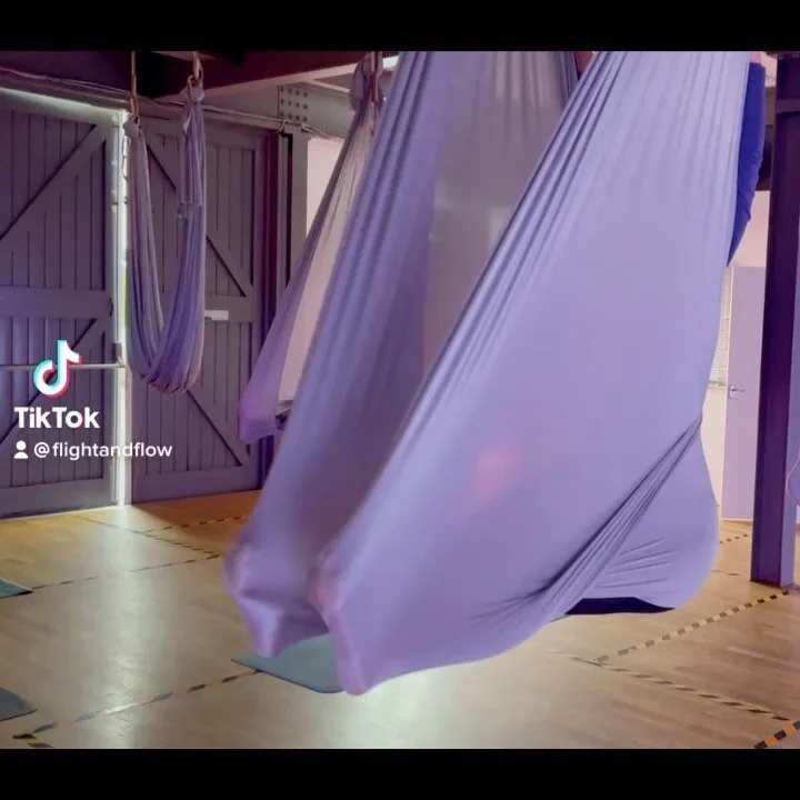 Whilst it is not compulsory to participate in the inversions, no aerial yoga class is complete without a little 'upside down'. This might feel odd at first, but once you get the hang of it (see what I did there!) then you’ll be pestering us to be upside down! There’s nothing more wonderful than the feeling of the spine gently decompressing with the help of gravity. Full demonstrations are performed and you will be guided through all inversions very slowly. You will be fully supervised, so take your time, do what you feel is comfortable for you, hang out and chill!